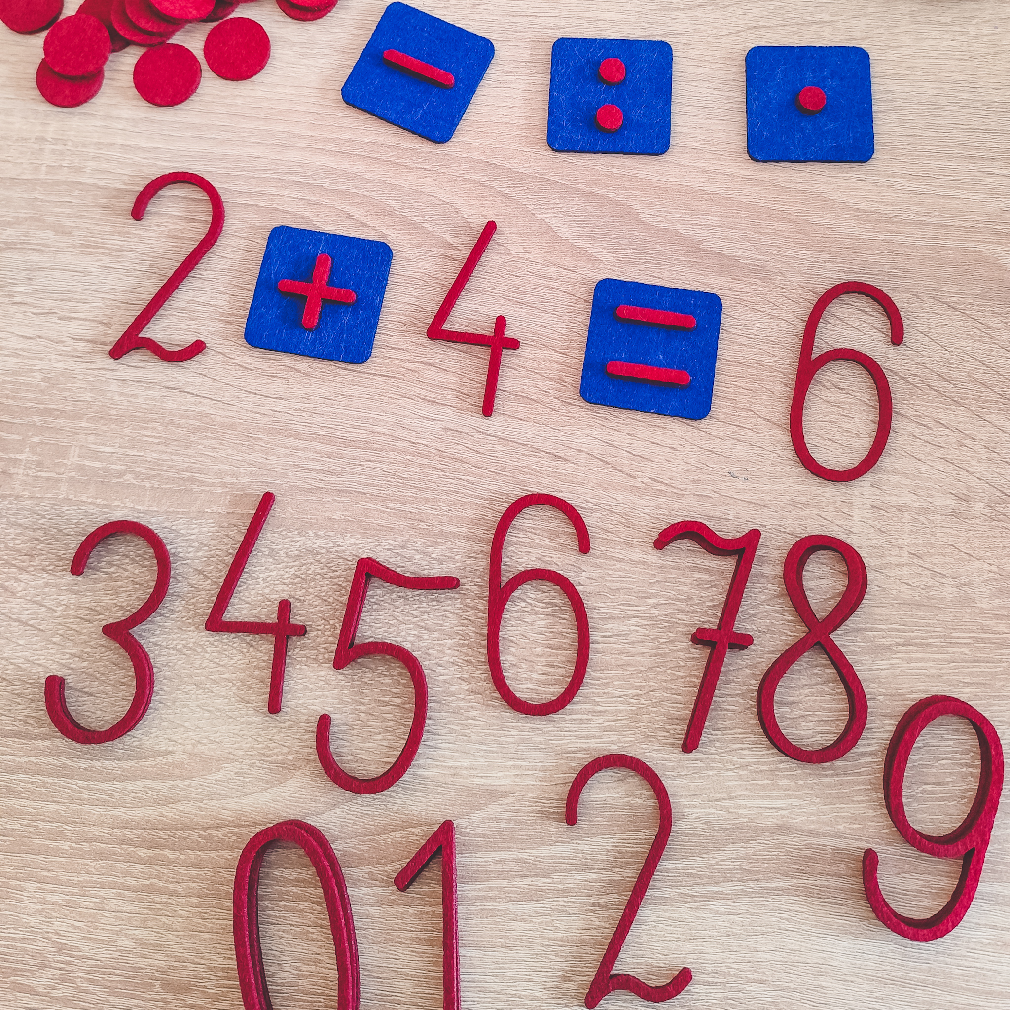 Filcowy zestaw cyfr i znaków matematycznych – nauka matematyki przez zabawę (w duchu Montessori).